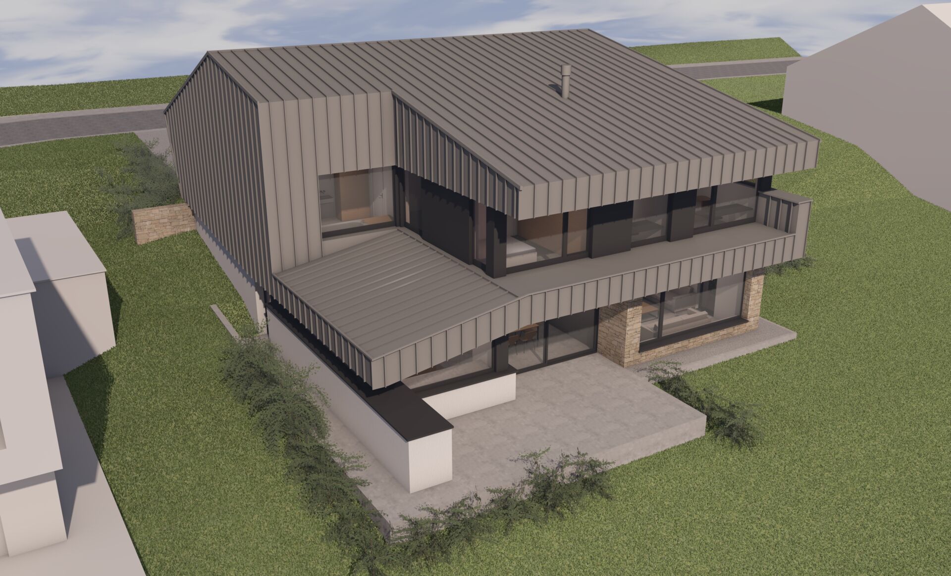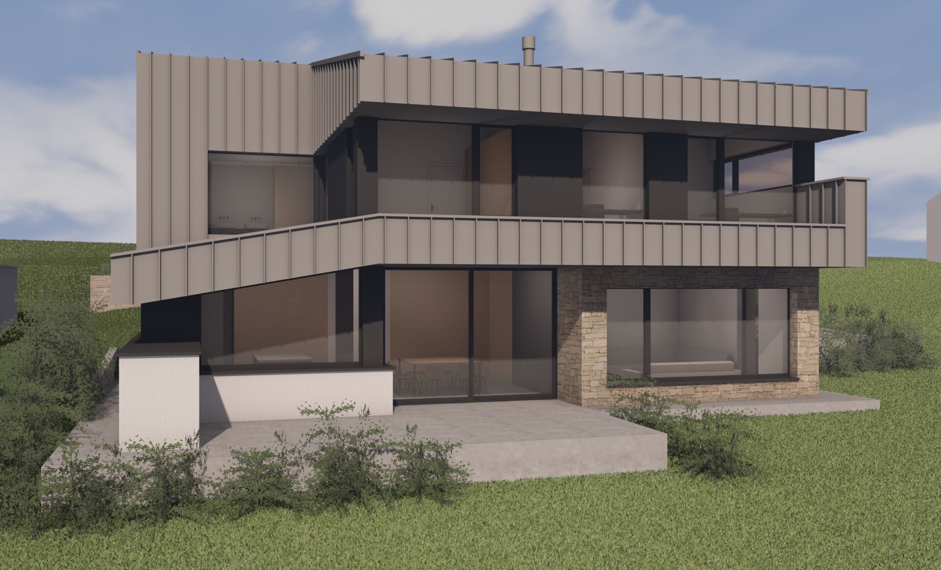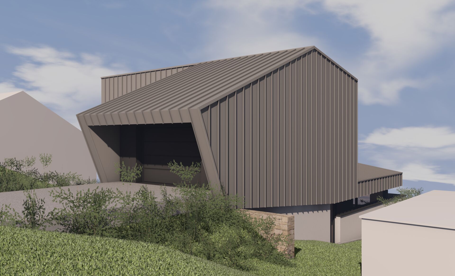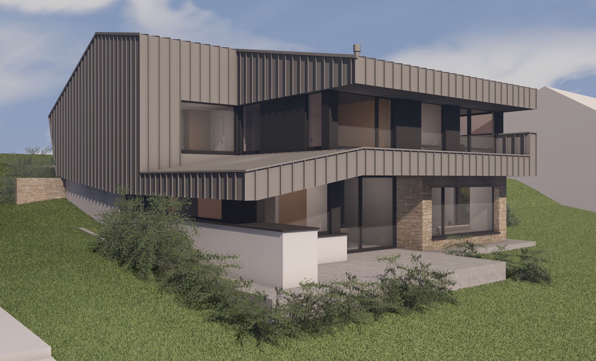 Le parti architectural est de s’intégrer à la pente et au contexte bâti existant.