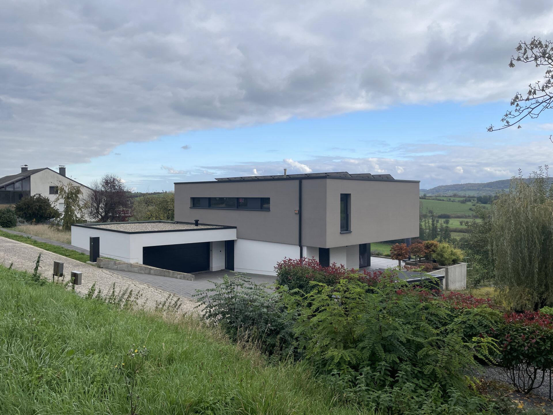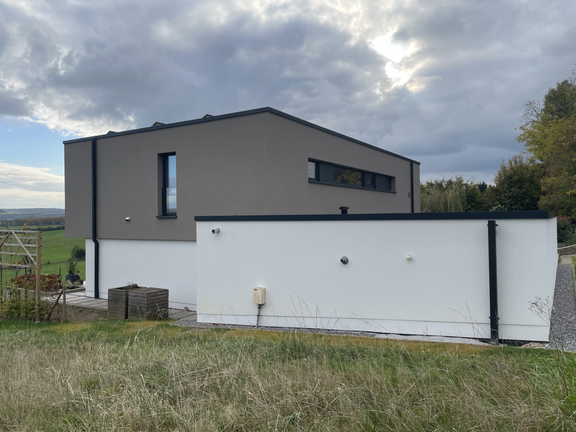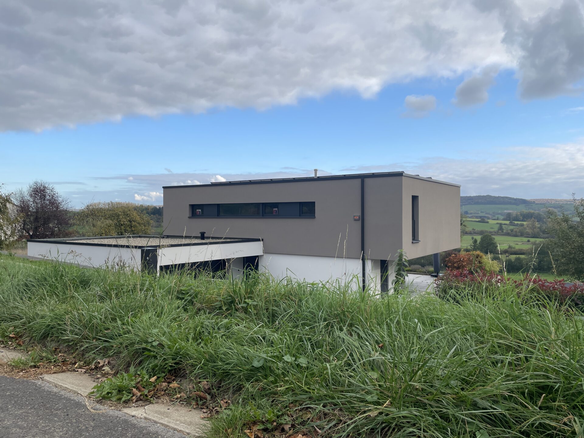 Il s’agit d’une habitation de conception approchant les standards passifs à Virton. Le terrain présente une pente descendante très marquée avec une belle vue sur le paysage. Le quartier est composé d’habitations pavillonnaires quatre façades relativement récentes. L’orientation est favorable.
