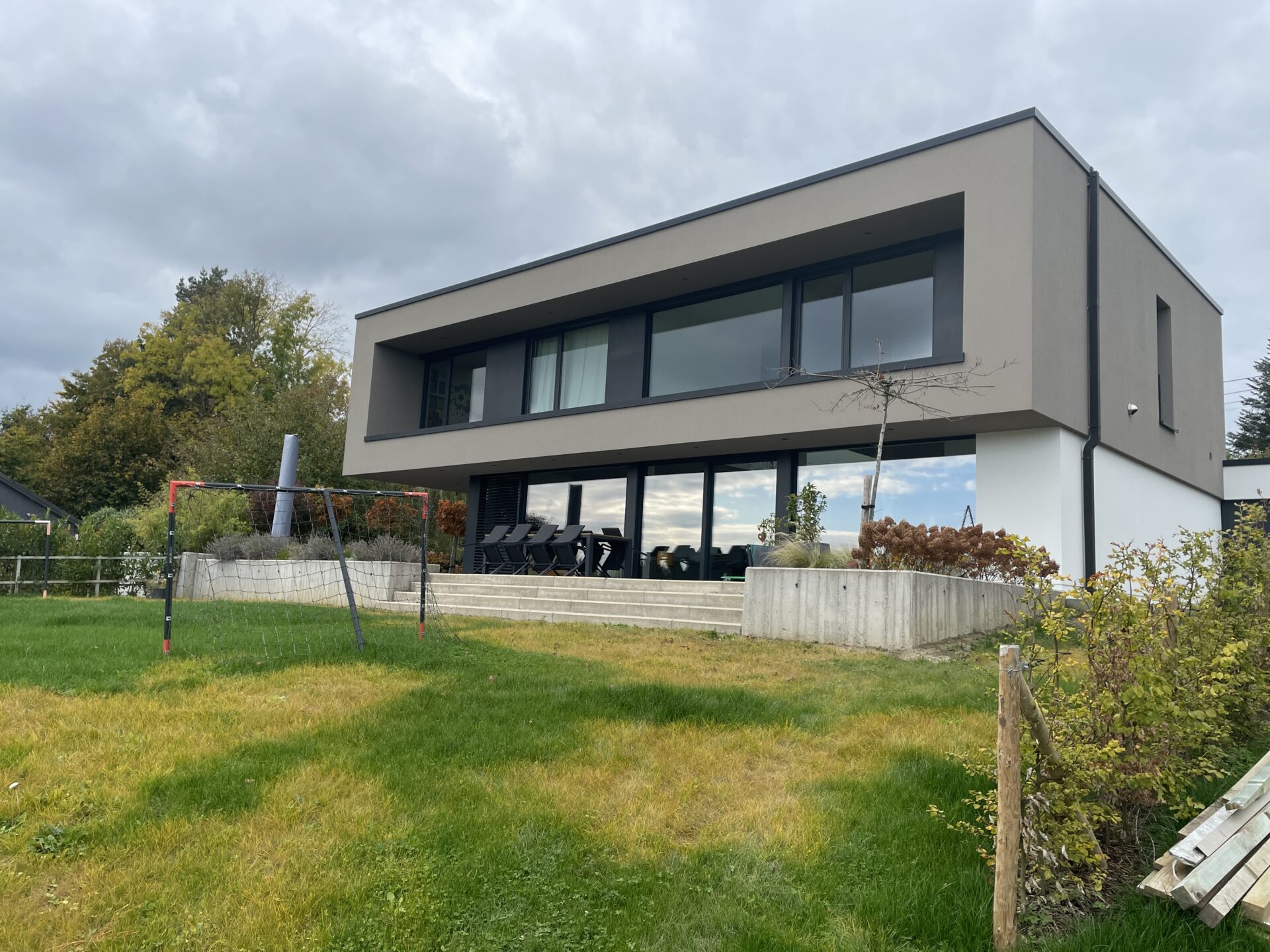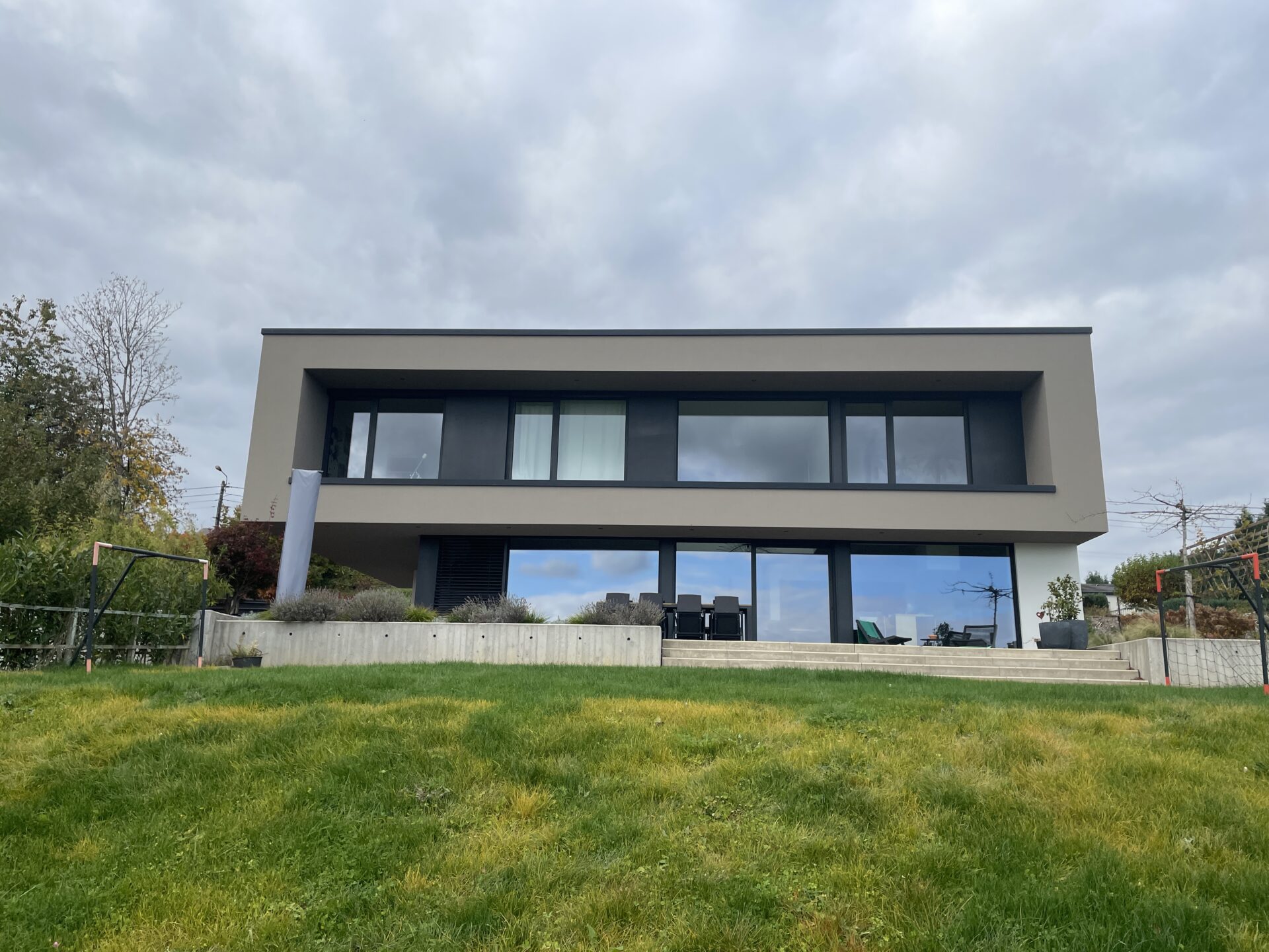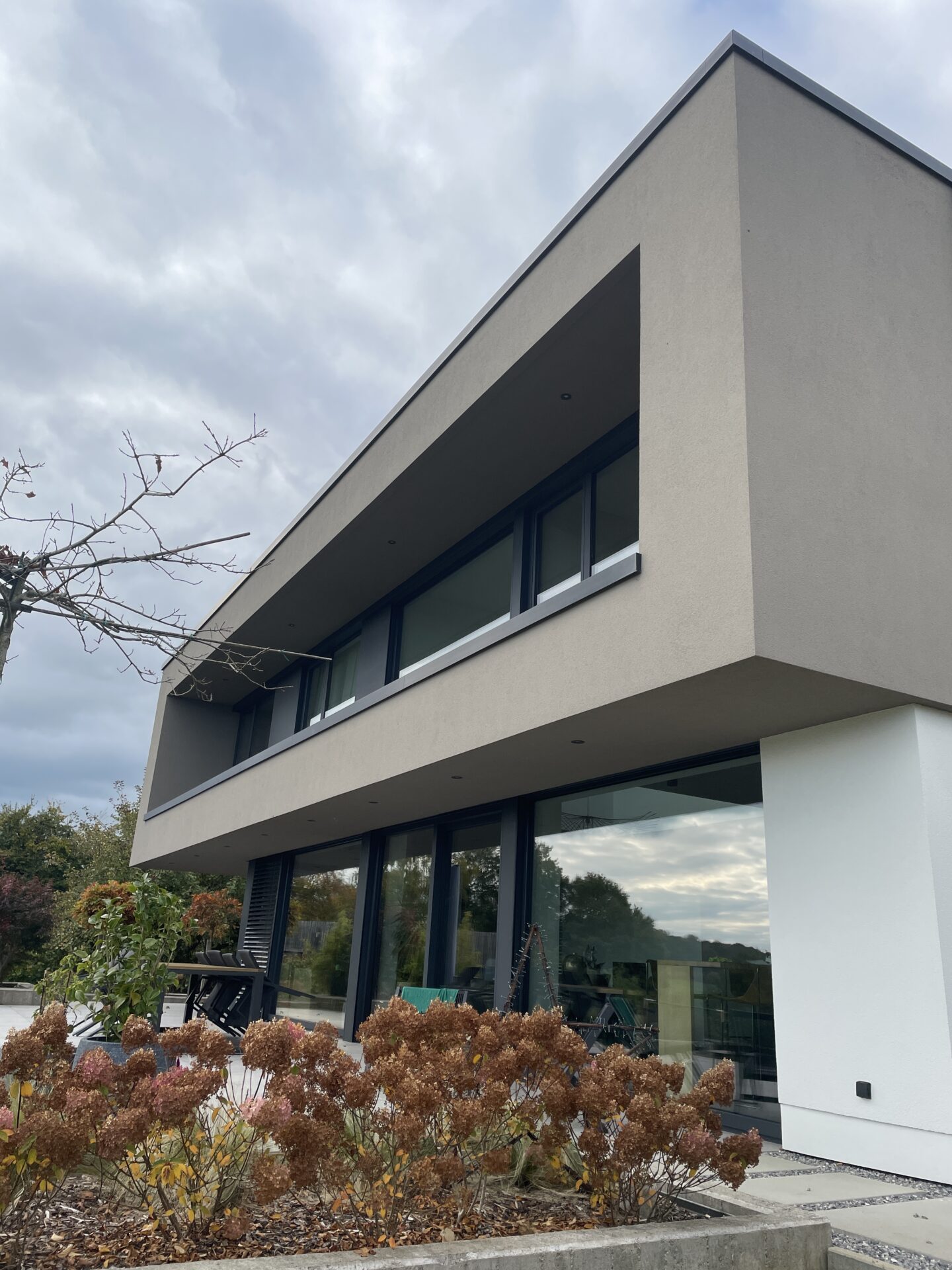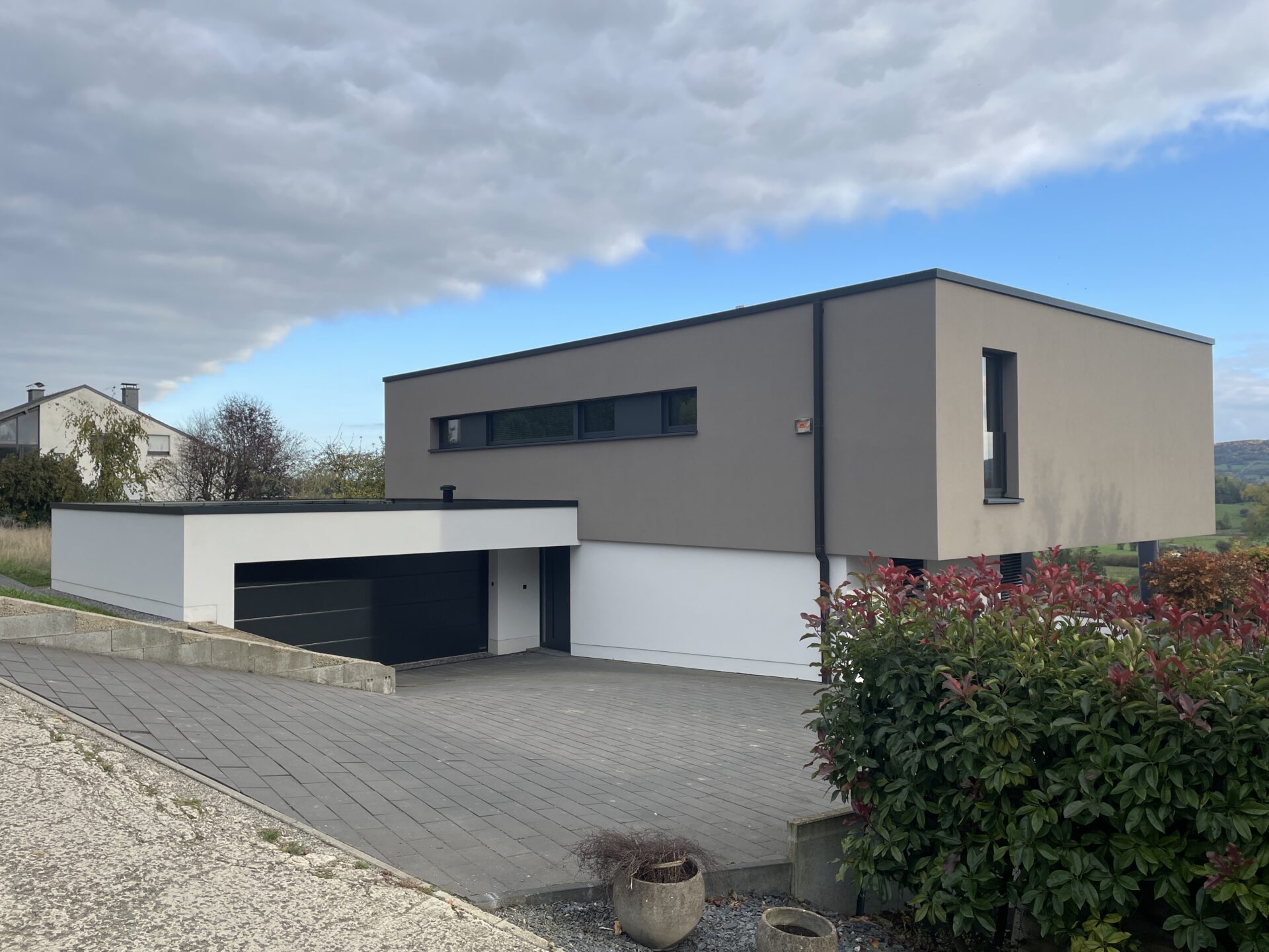 L’isolation accrue limite les déperditions. La toiture plate limite les volumes à chauffer et favorise une bonne compacité.